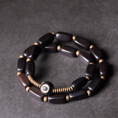 Tibet Ebony Wood Dzi Bead Copper Balance Double Wrap Bracelet