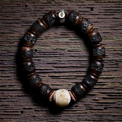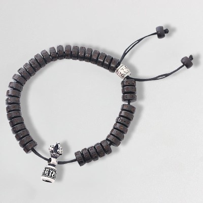 Tibet Coconut Shell Carved Om Mani Padme Hum Dorje Vajra Bell Happiness String Bracelet