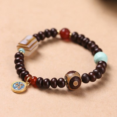 Retro Ebony Wood Texture Style Copper Peace Balance Bracelet