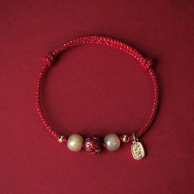 14K Gold Plated Hetian Jade Cinnabar Lotus Luck Handcrafted Rope Bracelet