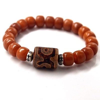 Tibetan Three-eyed Dzi Bead Agate Protection Happiness Bracelet