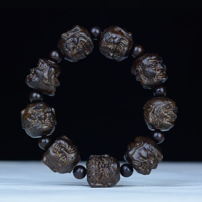 Ebony Wood Eighteen Arhats Lotus Dragon Engraved Balance Bracelet