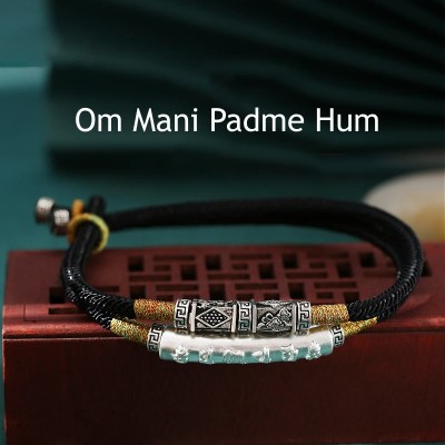999 Sterling Silver Om Mani Padme Hum Copper Coin Luck Strength String Couple Bracelet