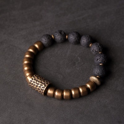Lava Rock Stone Rainbow Obsidian Copper Support Healing Bracelet