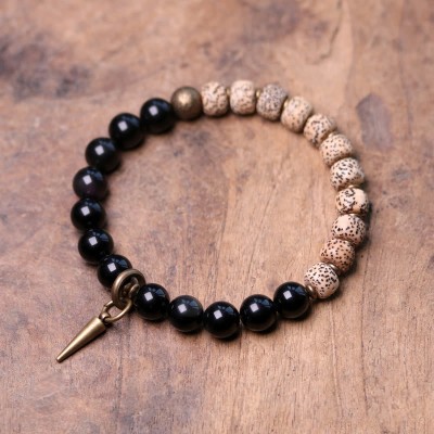 Tibetan Bodhi Seed Black Obsidian Ebony Wood Copper Peace Bracelet