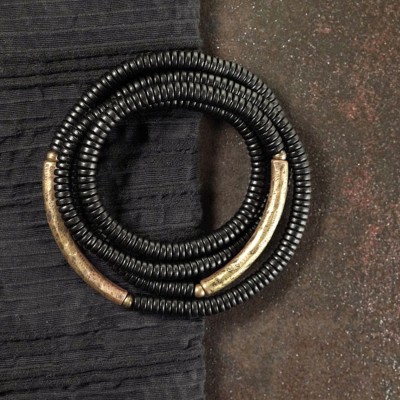 Tibetan Ebony Wood Beads Copper Peace Multilayered Bracelet