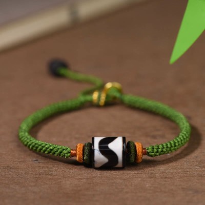 Handmade Tibetan Dzi Bead Protection Braided Green Rope Bracelet