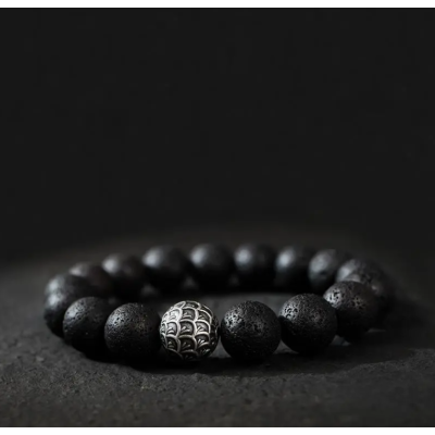 Alloy & Acrylic Bracelet – Minimalist Men's Volcanic Stone Beaded Wristband