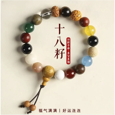 Non-Metal Wooden Beaded Bracelet – 18 Beads Single Loop Multi-Gem Ethnic Style Bracelet for Men and Women, Couples Jewelry