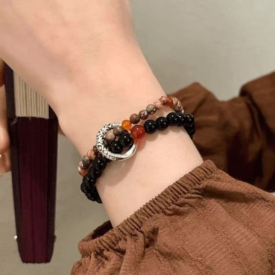 Zinc Alloy Bracelet – Mo Chuan Inspired Neo-Chinese Style Crackle Beaded Bracelet for Men