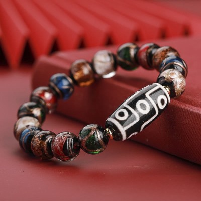 Tibetan Nine-Eye Dzi Bead Three-eyed Dzi Bead Liuli Glass Bead Wealth Bracelet