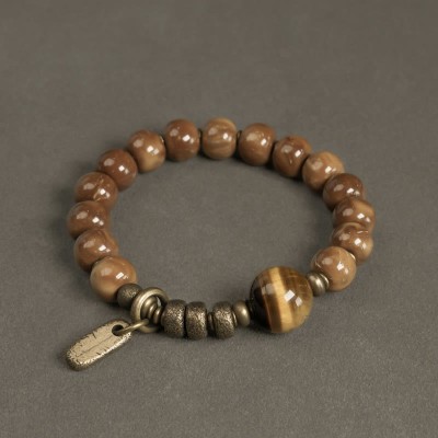 Kuka Seed Tiger Eye Gold Sheen Obsidian Copper Wealth Luck Bracelet