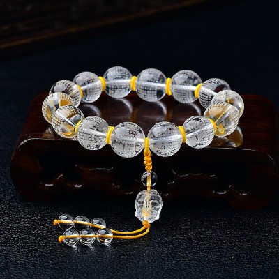 Tibet White Crystal Half Demon Half Buddha Heart Sutra Lotus Healing Bracelet