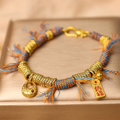 Gold Swallowing Beast Family Luck Reincarnation Knot Braid Colorful String Bracelet