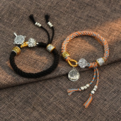 Handmade Tibetan Om Mani Padme Hum Fu Character Luck Fortune Braided Bracelet