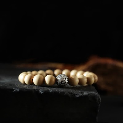 Tibet Peach Wood Lotus Cinnabar Bagua Yin Yang Luck Wealth Bracelet