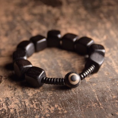 Tibetan Ebony Wood Dzi Bead Strength Bracelet